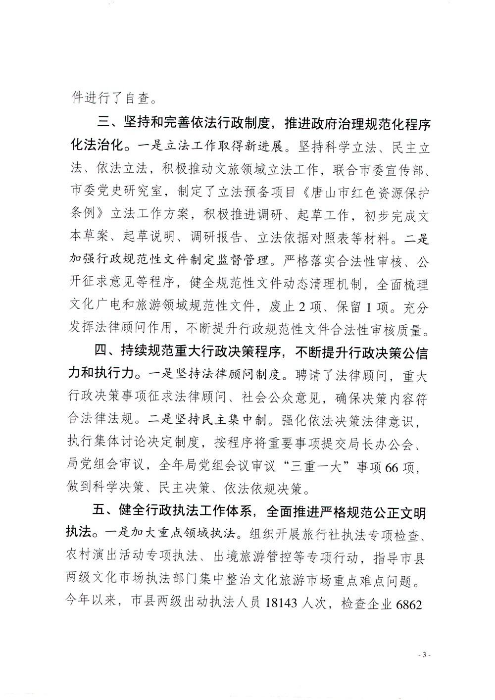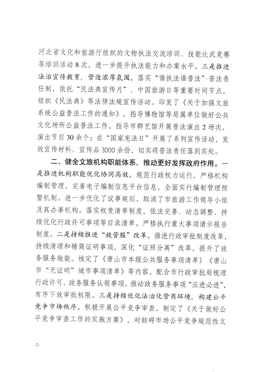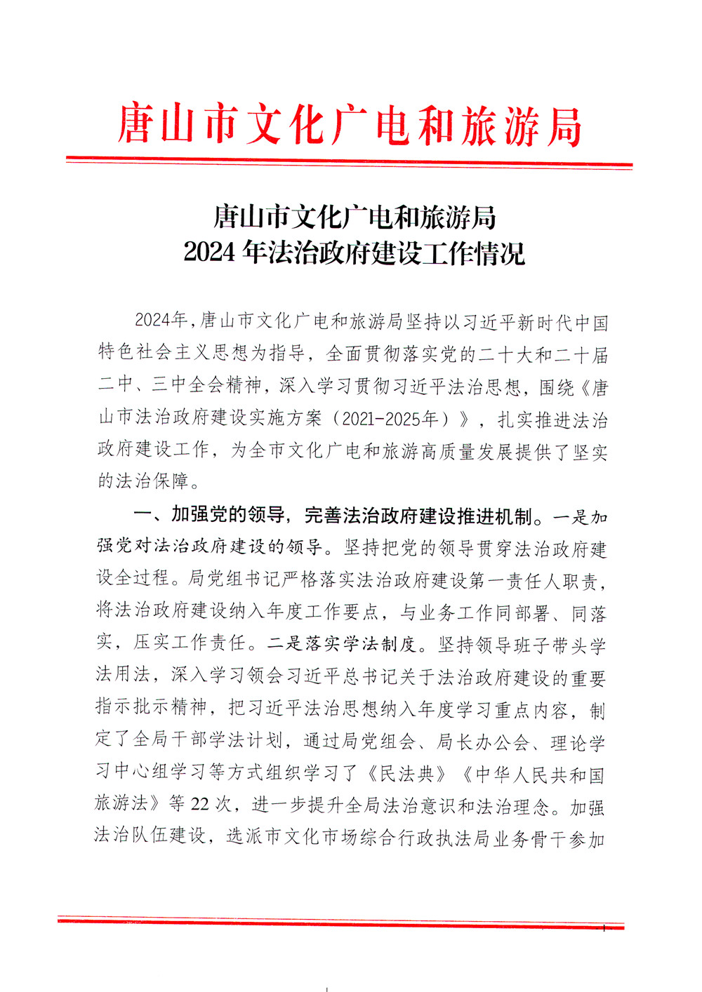 唐山市文化广电和旅游局2024年法治政府建设工作情况