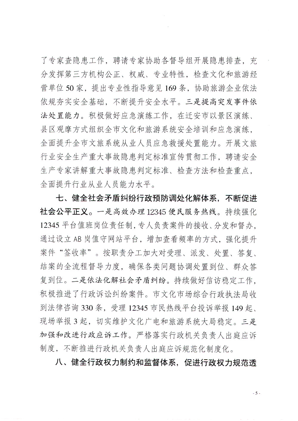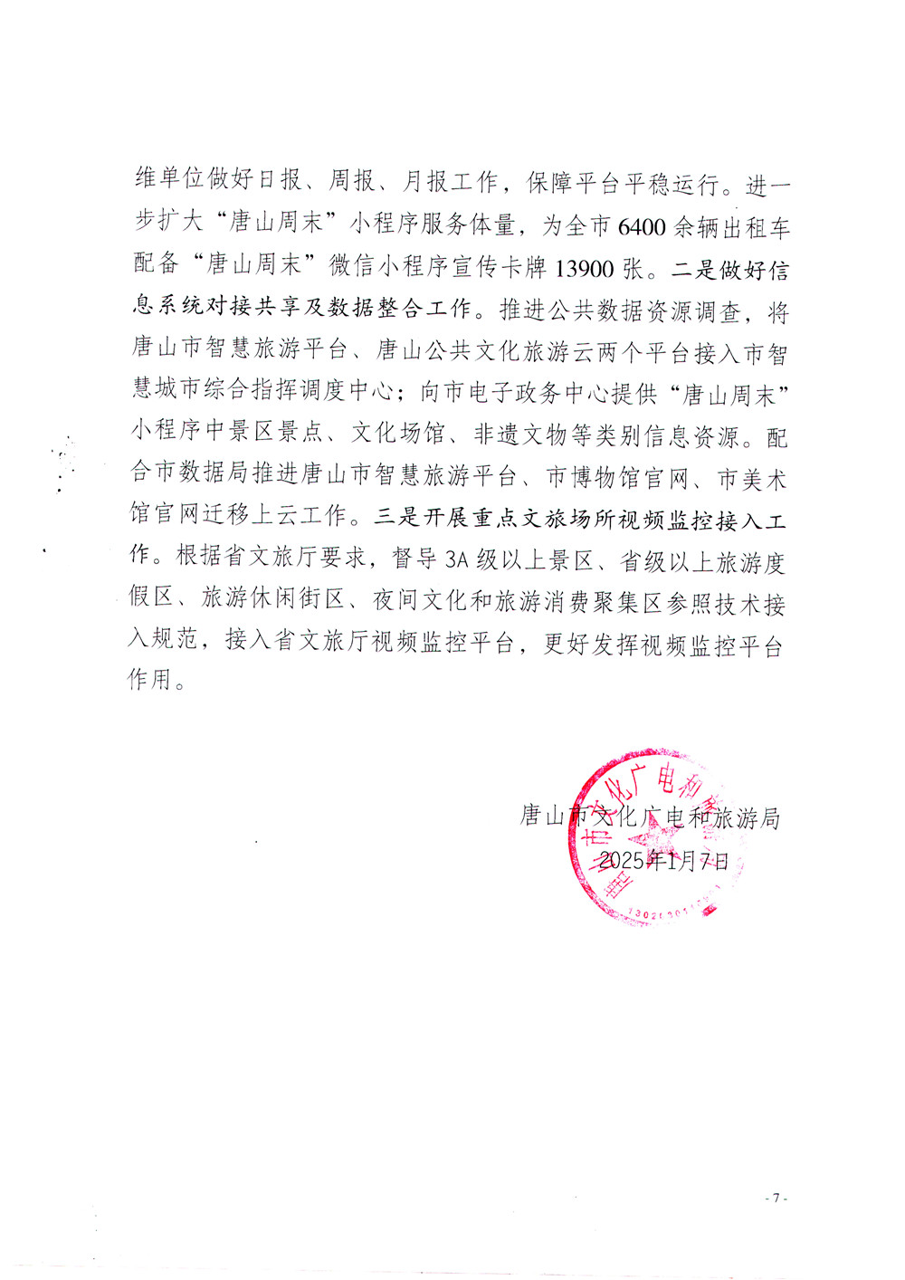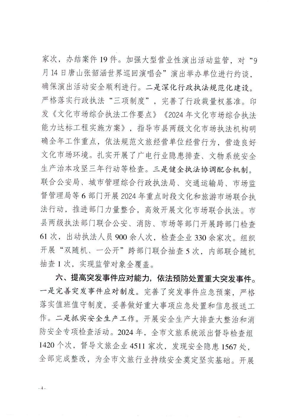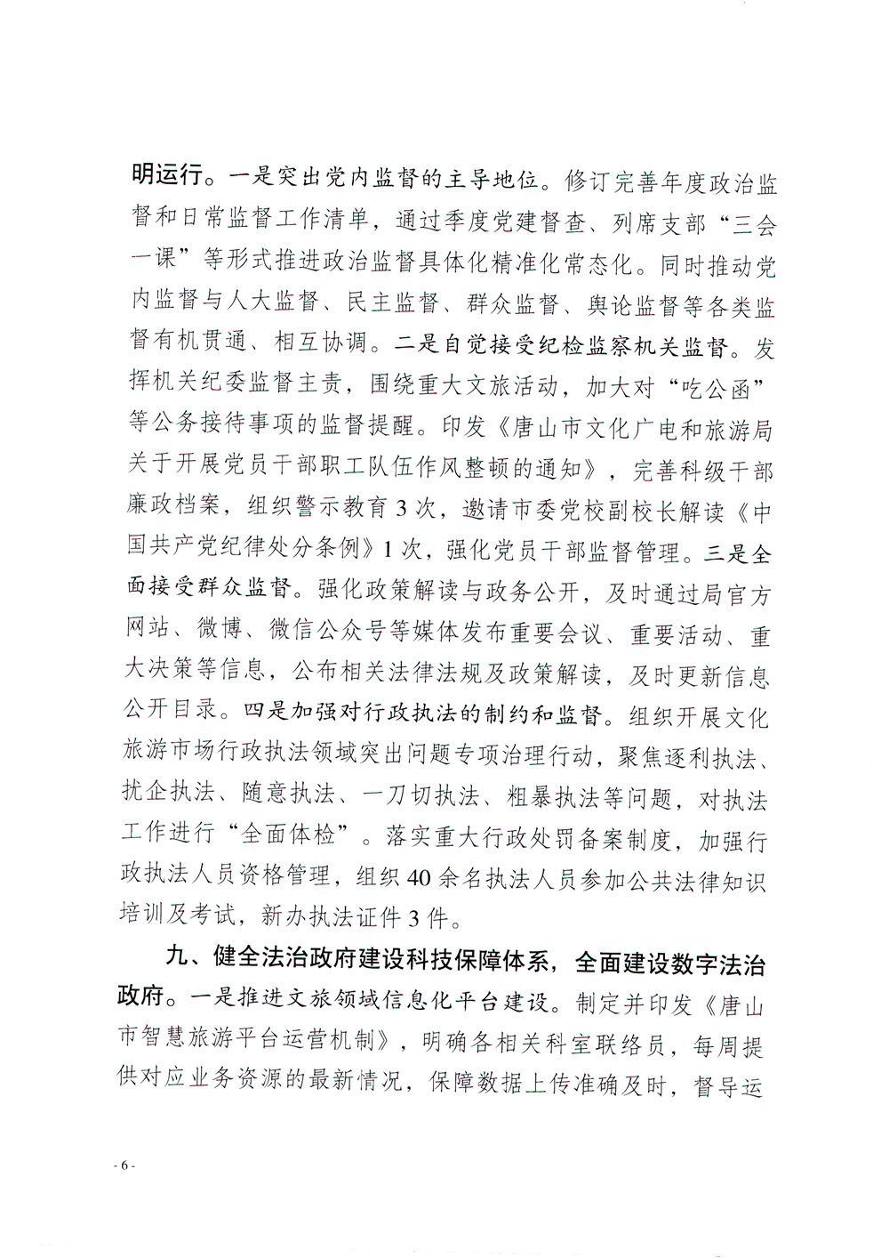 唐山市文化广电和旅游局2024年法治政府建设工作情况