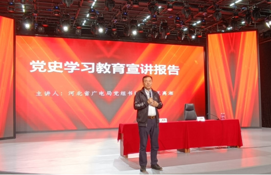 在唐山市广播电视台一号演播厅,王离湘进行了生动的党史学习教育宣讲,要求全省广电系统要把党史学习教育同广播电视和网络视听职责任务紧密结合,立足主责主业,突出主题主线,做优做强做好“三个广电”,以优异成绩迎接中国共产党建党一百周年。?局党组书记邢京林、副局长贺子欣及传媒处、科技处全体,相关播出传输机构主要负责同志陪同。