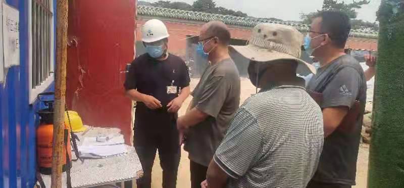 检查组一行实地查看了清东陵景区游客中心、售票窗口、部分景点、文物修缮施工现场等场所的疫情防控措施执行情况,听取了景区疫情防控工作汇报。在检查中发现工作人员均按要求佩戴口罩,设置了“一米线”,每日定时进行防疫消杀,对进入人员严格落实预约登记、测温等措施,并提醒游客佩戴口罩,做好自我防护。