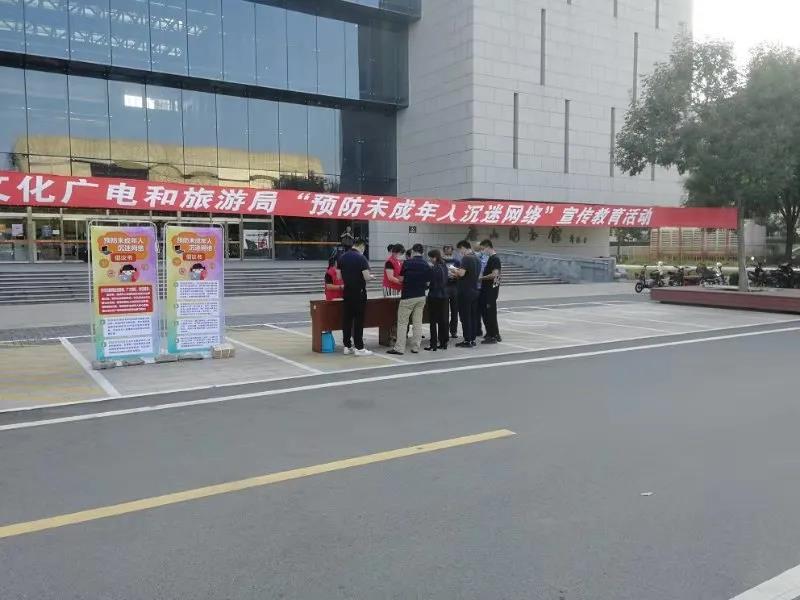 9月7日下午,唐山市文化广电和旅游局在市图书馆北广场开展了“预防未成年人沉迷网络”宣传教育活动。活动中向参与群众发放了2021年6月1日起实施的新版《未成年人保护法》以及“预防未成年人沉迷网络”倡议书、宣传画册、纪念品等。市场管理处工作人员现场对参与群众提出的问题予以解答,并提醒家长做好未成年人的教育引导,帮助孩子做到健康上网、正确用网。