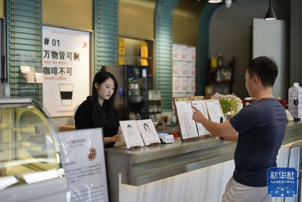 9月12日,市民在培仁历史文化街一家咖啡厅选购咖啡。