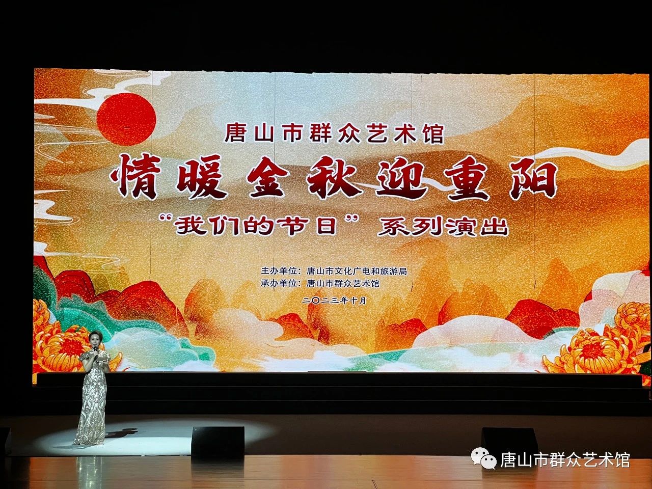 岁岁重阳,今又重阳。九九重阳节,也是我国法定的第十一个“老年节”,为弘扬中华民族传统美德,营造尊老、敬老、孝老、爱老、助老的浓厚氛围,丰富群众精神文化生活,10月21日下午由唐山市文化广电和旅游局主办,唐山市群众艺术馆承办的“情暖金秋迎重阳—我们的节日”系列演出在唐山市群众艺术馆艺术剧场举办。