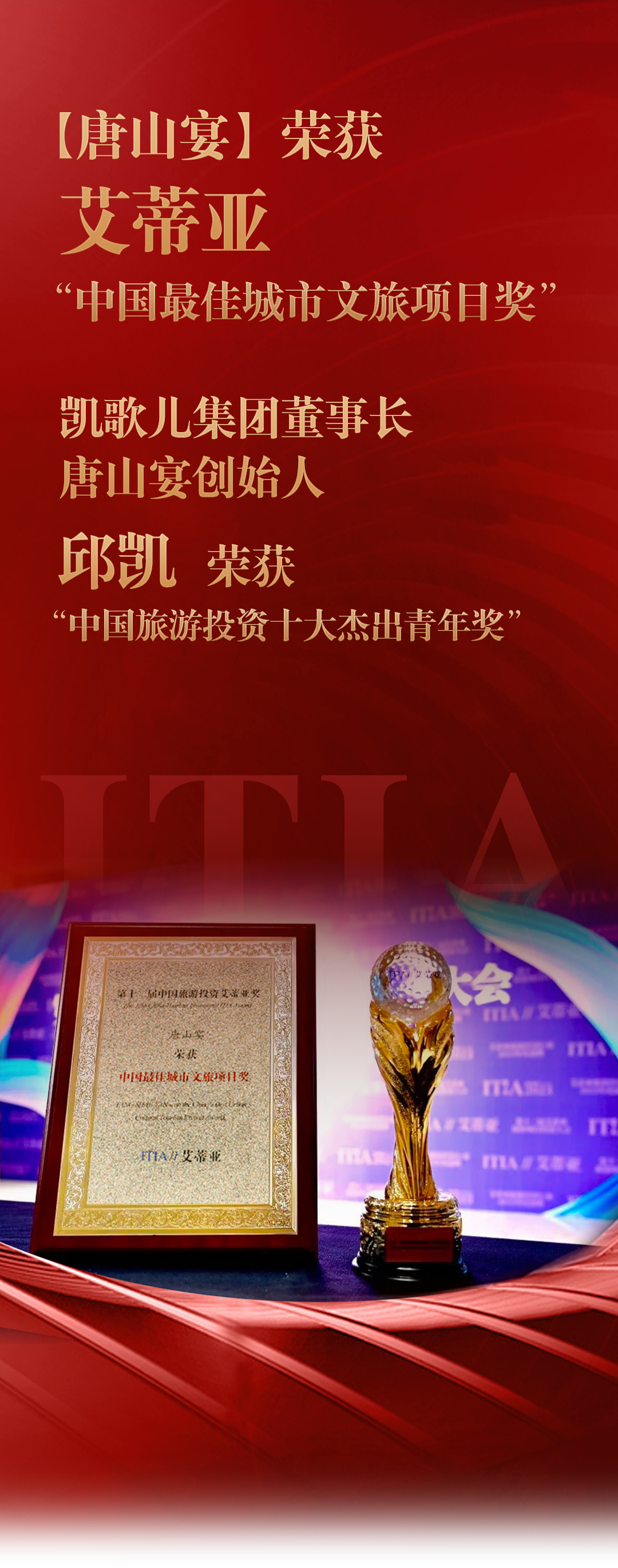 2023年11月11日-11月12日,第十三届艾蒂亚旅游项目投资大会暨第十一届、第十二届艾蒂亚奖颁奖典礼在南京江苏园博园正式召开。【唐山宴】荣获艾蒂亚“最佳城市文旅项目奖金奖”、凯歌儿集团董事长邱凯荣获“中国旅游投资十大杰出青年奖金奖”这是唐山文化旅游行业取得的又一里程碑式突破。艾蒂亚奖创办于2011年,是中国旅游投资行业的最高荣誉,被称为中国旅游的奥斯卡奖。艾蒂亚奖以专业权威的评奖和盛大隆重的颁奖活动著称,是中国旅游投资领域的标志性年度活动。