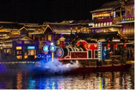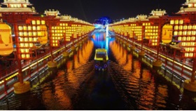 整体规划分为“一河一湖两街”,共分三个阶段完美呈现,主要建设水上市集、花车巡游、六大主题文化广场(河头文化广场、东征文化广场、祈福广场、望震广场、唐山话广场、杂技广场)、老车柿集等,并搭配近百架唐风灯笼排阵和百余种互动微演绎等观光亮点。