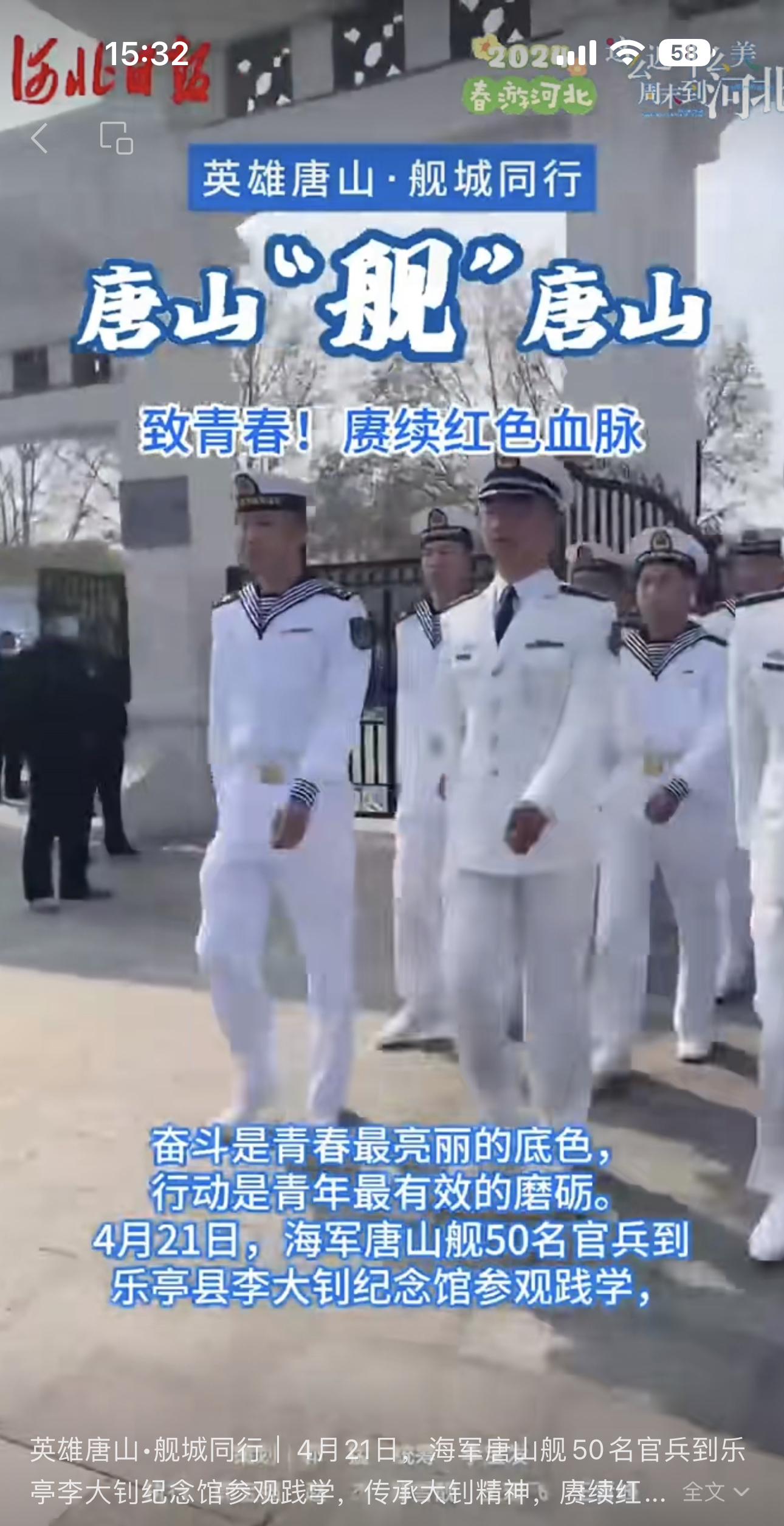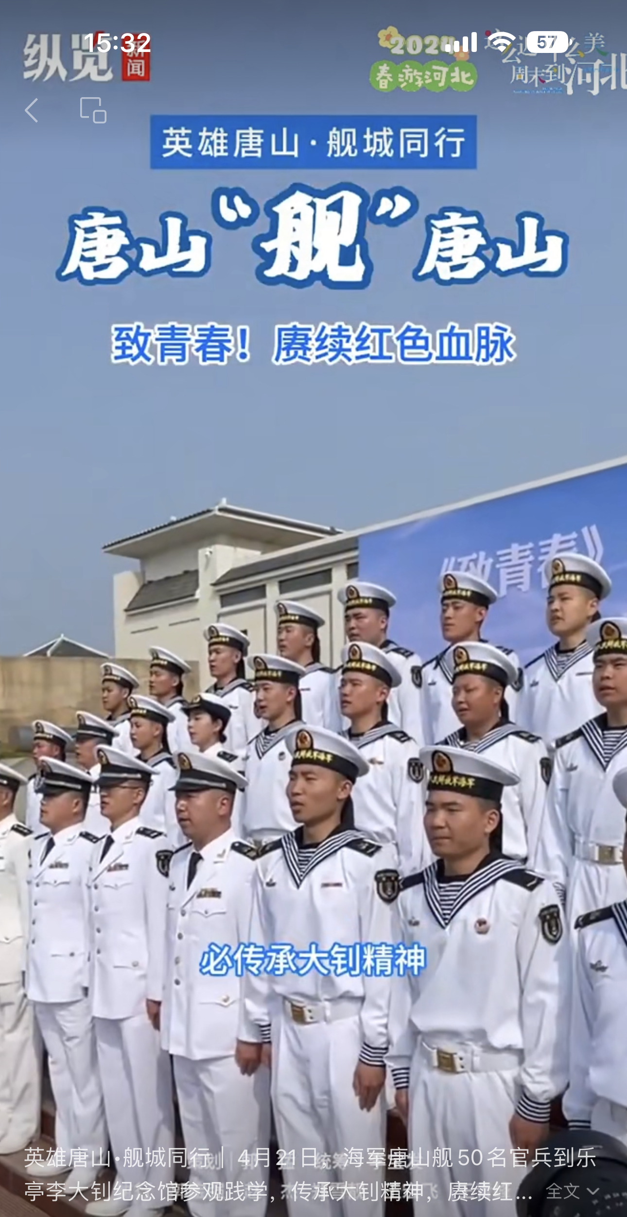 4月21日,唐山舰官兵在唐开展参观见学,深入感受唐山这座城市的红色文化、工业文明、城市建设和高质量发展成就。
