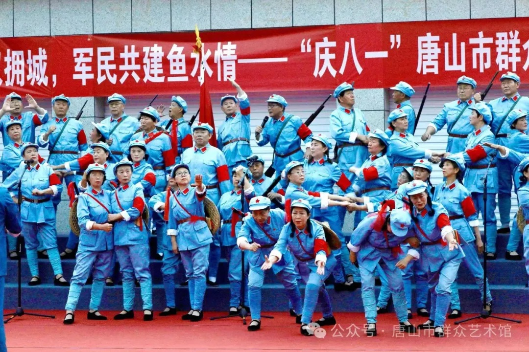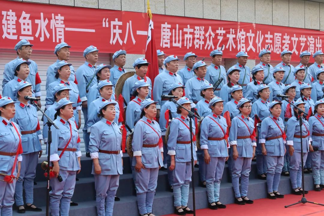 《长征组歌》由唐山市群众艺术馆90余名文化志愿者完成整场演出,演出时长60分钟,精彩的演出虽然短暂,但陪伴官兵们度过了一个美好而难忘的建军节。此次慰问演出,通过文艺力量感染官兵,催化战斗精神,激励军民不断铸牢中华民族共同体意识,让广大官兵们回顾历史,了解历史,缅怀先烈,弘扬红军伟大的长征精神,共同谱写了“军爱民,民拥军,军民鱼水一家亲”的精彩篇章。