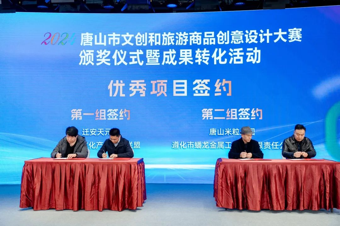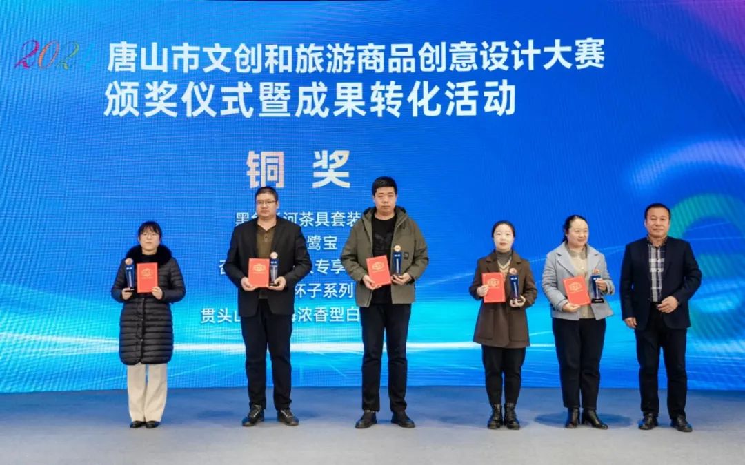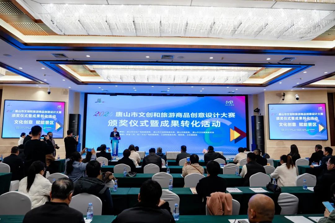 11月21日,2024唐山市文创和旅游商品创意设计大赛颁奖仪式暨成果转化活动成功举办,现场共颁出奖项61个。遵化市蟠龙金属工艺品有限责任公司的《龙啸天》茶具套装在本届大赛中喜获金奖,迁安市中医医院、唐山宴禧商贸有限公司、唐山曹妃甸文旅集团有限公司代表参赛单位作创意产品推介,唐山市凯歌儿实业有限公司与中国邮政集团有限公司唐山市分公司等6组企业现场签约。本次活动促进了优秀文创和旅游商品的展示交流,为创意成果转化和景区业态提升搭建了坚实桥梁,有力推动了文旅产业融合创新发展。