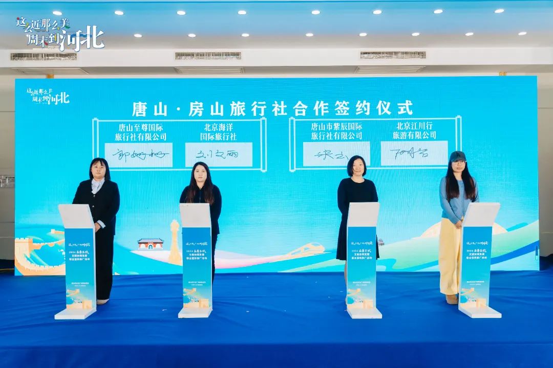 ▲唐山市文化广电和旅游局与北京市房山区文化和旅游局签署《文化旅游协同发展合作协议》 ▲两地8家旅行社签订合作协议